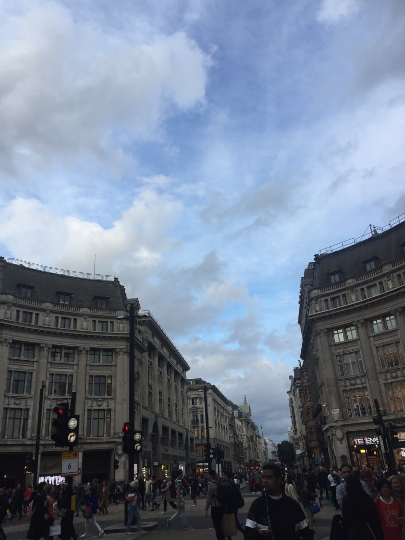 После окончания одной главы должна неизбежно родиться другая. Правда, никто никогда толком не знает, какой она будет, а потому смутные томления и общая нервозность обеспечены. У меня завершился гигантский проект, длившийся более двух лет. Желаю завести какую-нибудь регулярную рубрику. Регулярность вообще вещь хорошая – это я поняла на собственном горьком опыте как человек, всю жизнь ненавидевший любые рамки и ограничения и жаждавший быть в свободном полёте. Ан нет. Свободный полёт требует… мало того, что самодисциплины, так и ещё адову кучу разнообразнейшей лабуды, в которую я сейчас вдаваться не буду. Итак – The Weekend Pieces. Название, думаю, само по себе всё объясняет, так что поехали. Лондонский уикенд с нежным вечерним небом и рассеявшимся дождём.